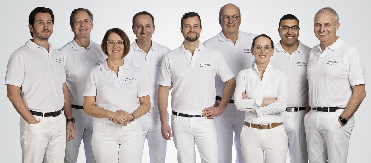 Ein elfköpfiges Fachärzteteam aus renommierten, hochqualifizierten Spezialisten kümmert sich um Erkrankungen und Beschwerden des gesamten Bewegungsapparates, von Schulter über Ellenbogen und Hand bis hin zu Hüfte, Knie, Sprunggelenk, Fuß und Wirbelsäule. Je nach Diagnose und Krankheitsbild wird konservativ oder operativ behandelt, entweder ambulant oder mit stationärer Aufnahme. Dank interdisziplinärer Zusammenarbeit und des angeschlossenen ATOS MVZ und der ATOS Physiotherapie finden Prävention, Diagnostik und die langfristige Nachsorge unter einem Dach statt, wodurch ganzheitliche Betreuung und beste Therapie gewährleistet werden.