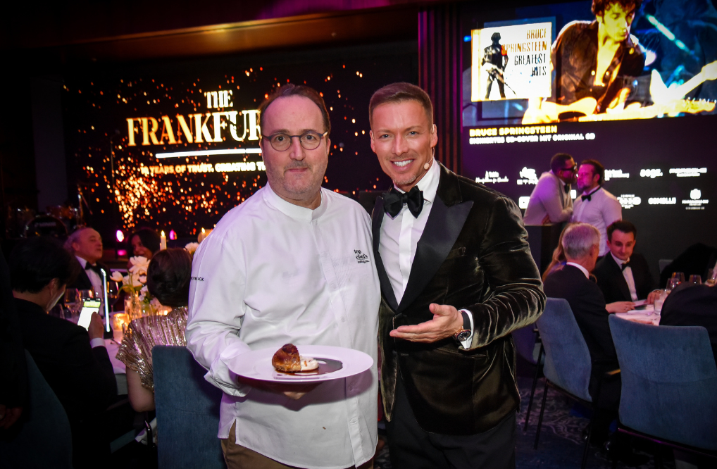 Im Anschluss genossen die Gäste ein exquisites 4‑Gänge‑Gala-Dinner auf Sterne-Niveau unter der kulinarischen Leitung von Michelin-Sternekoch Carmelo Greco, Executive Chef Holger Jackisch und Chef Pâtissier Hartmut Sohn. Das Menü reichte von Black Cod mit wildem Fenchel über marinierte Eismeer-Garnele bis zum Rinderfilet Wellington mit Kartoffelmousse und Portweinjus. Den süßen Abschluss bildete ein Schokoladen-Caramel-Cremeux.