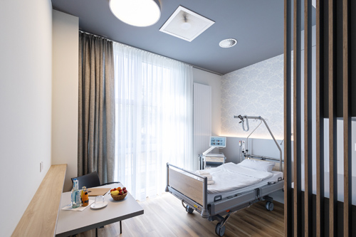 Für das Maximum an Komfort während des Klinikaufenthaltes sorgen eine individuell auf die persönlichen Temperaturvorlieben einstellbare Raumklimatisierung, ein umfassendes Entertainmentsystem mit Zugriff auf Filme und Musikangebote sowie ausgewogene, frisch zubereitete 3-Gang-Menüs.